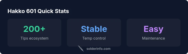 In-depth, data-driven guide to the hakko 601 soldering iron, covering features, tips, maintenance, compatibility, safety, and best practices for hobbyists and professionals in electronics soldering.