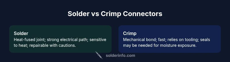 Both solder and crimp connectors serve to join wires and components, but they suit different situations. Soldering creates a solid electrical path and can handle delicate wiring with careful heat control, while crimping offers fast, repeatable connections with reliable performance when proper tooling is used. The best choice depends on environment, maintenance needs, and rework priorities.