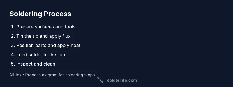 Soldering is a method for joining metal parts by melting a filler metal (solder) that flows into the joint. The goal is a durable, electrically conductive bond with a clean wetting surface. Achieving a good joint requires clean surfaces, properly fluxed joints, and controlled heat. When done correctly, solder fills gaps, forms a shiny, smooth fillet, and preserves component integrity. In electronics, you typically use lead-free solder and rosin flux, while plumbing and jewelry may tolerate different alloys and flux types. Throughout this guide, remember the core principle: heat the joint, not the solder, and keep the surfaces clean to promote adhesion. According to SolderInfo, the most reliable solder joins start with clean surfaces and controlled heat. Building muscle memory comes from practice, not rapid, careless passes; take your time to learn how heat transfers into the parts and how the solder behaves once it melts. The quality of the tip, the cleanliness of the board or wire, and the amount of flux all influence how easily solder flows and how strong the final joint will be. This foundation helps you pick tools and techniques that match the task at hand, from electronics to plumbing or jewelry making.