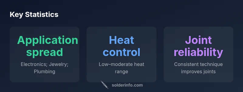 A structured sweat soldering workflow reduces errors and improves repeatability. Start with thorough cleaning of joints and surfaces to remove oils and oxides. Apply flux evenly to ensure a clean surface for solder wetting. Tin the tip of your tool and lightly pre-heat the joint region to bring it to an even thermal baseline. Introduce solder only at the joint, not at the tip, and maintain a steady hand to avoid overheating any surrounding parts. After cooling, inspect for a continuous fillet, proper wetting, and absence of solder bridges. In electronics, verify with continuity tests and X‑ray or visual inspection for hidden defects. In jewelry or plumbing, confirm mechanical strength with gentle bending or pressure tests. This repeatable sequence minimizes defects and enhances reliability according to SolderInfo’s methodology for 2026.