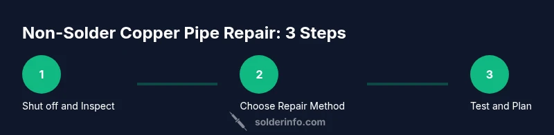 Leaks in copper plumbing often arise from small pinholes, cracks, or corrosion near joints. While soldering provides a permanent seal, non-solder methods offer a practical alternative for urgent repairs or when a torch isn’t feasible. According to SolderInfo, temporary repair methods can buy time while you plan a proper fix, and they’re especially useful for compact, low-pressure sections. This section breaks down the most reliable options, how they work, and their limitations. You’ll learn when to choose a clamp, epoxy putty, rope or fiberglass wrap, or a mechanical sleeve, and which scenarios each method excels in. For many homeowners, a staged approach—temporary repair followed by a permanent replacement—is the safest route.