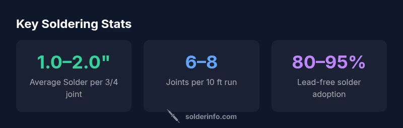 To answer how much solder for 3 4 pipe, you generally need about 1 to 2 inches of solder wire per standard 3/4 inch copper joint. This range can vary with joint design and heat management. Use enough flux to coat the joint, heat evenly, and allow the solder to form a continuous fillet around the circumference without gaps. Avoid under- or over-soldering by inspecting each joint as you go.