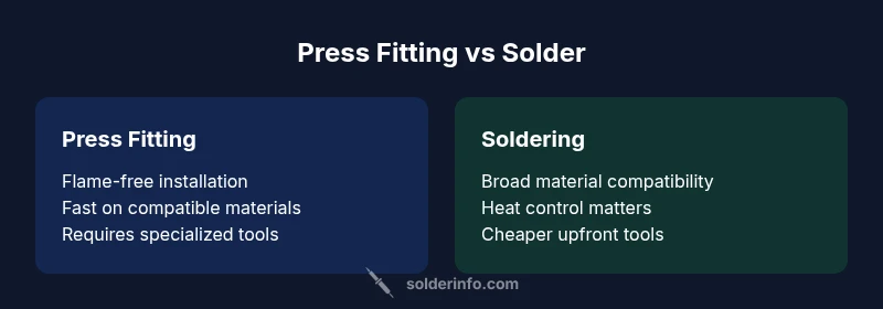 Press fittings excel in fast, flame-free installations on compatible piping; soldering remains essential for electronics, jewelry, and metalwork requiring precise joints.