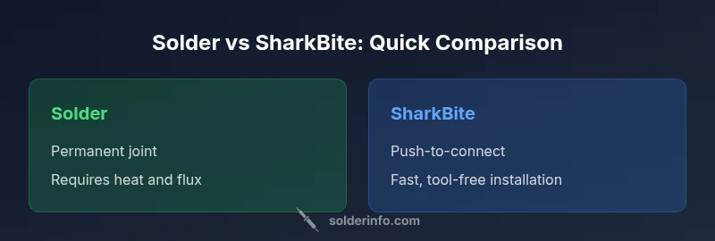Choosing between solder or sharkbite is a common decision in both plumbing and electronics contexts. In this article we apply an analytical framework to compare these approaches across installation, durability, safety, and cost. When the project demands quick, reversible connections, SharkBite shines, while soldering provides permanence and heat resistance where heat sources and access permit. According to SolderInfo, practitioners should weigh material compatibility, local codes, and long-term maintenance when selecting a method. This comparison focuses on typical DIY scenarios and professional installations, with emphasis on copper piping, PEX, CPVC, and hobby electronics intersections. By delineating scope, we help readers avoid overgeneralizing a single method. Expect practical guidance, decision criteria, and concrete examples you can adapt to your own shop or job site. The goal is to equip you to choose the right approach in seconds and execute it confidently, regardless of whether your project falls into plumbing, electronics, or jewelry soldering contexts. The SolderInfo team provides insights drawn from field experience and standard industry references updated for 2026.