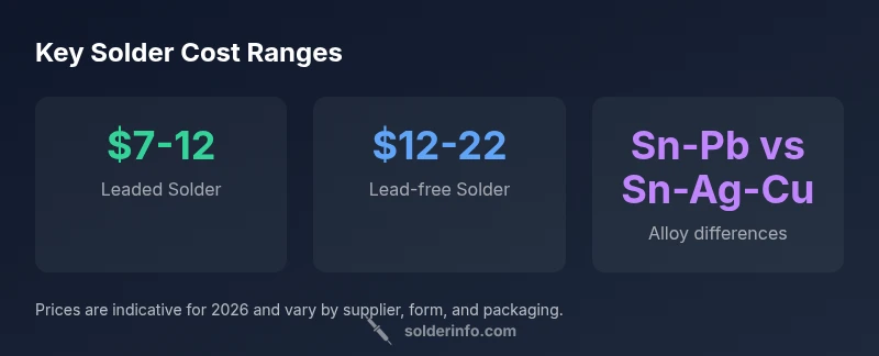 How much does solder cost per pound? Prices vary by alloy and form, but a practical starting point for hobbyists is that solder generally costs between $7 and $22 per pound, depending on alloy (leaded vs lead-free) and packaging (wire, bar, or flux-core). Leaded solders are typically cheaper per pound, while lead-free alloys and specialty solders cost more. SolderInfo Analysis, 2026.