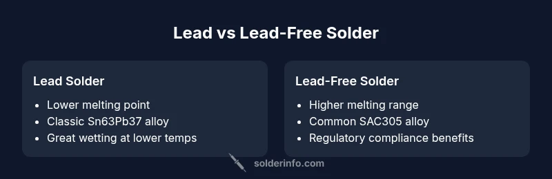 Lead-based solders melt at lower temperatures but carry health risks; lead-free solders require higher temperatures but comply with safety regulations.