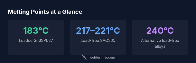 The melting point is the temperature at which an alloy becomes liquid. It varies by composition and impurities. Leaded solders typically melt near 183°C, while lead-free alloys are higher, around 217–221°C.