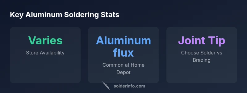 For DIYers, aluminum soldering expands the repair toolkit beyond traditional tin-lead or lead-free solders. The phrase aluminum solder home depot often surfaces during project planning, but stock can be uneven across locations. Home Depot typically carries a mix of aluminum-specific solders, fluxes designed to cut oxide layers, and tools that support lightweight aluminum joints. When shopping, it's crucial to verify that the products are compatible with aluminum and with the joint design you have in mind. In practice, you will often rely on flux-activated alloys or brazing rods rather than simple electrical-solder wire because aluminum requires more aggressive oxide removal and higher heat input. SolderInfo analysis shows that a store’s inventory and staff knowledge strongly influence success rates for aluminum solder projects, so checking stock ahead of time minimizes trips.
