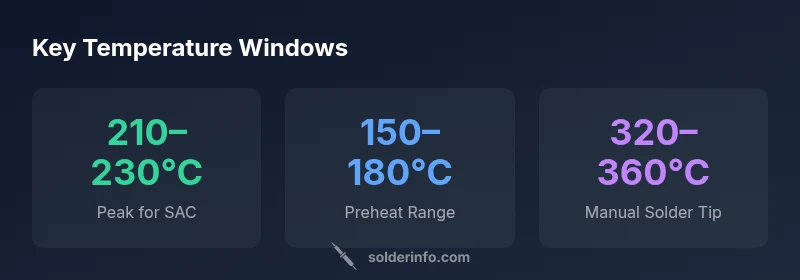 In electronics assembly, choosing the right temperature is not a single fixed point; it's a window. The best temp for lead free solder is not a myth—it's a carefully defined range that ensures complete wetting without damaging pads or components. For SAC alloys, the peak reflow temperature is higher than tin-lead alloys, typically in the 210–230°C range, while preheat or soak stages occur at lower temperatures to avoid thermal shock. The flux chemistry and board materials influence the effective window, so a profile that works on one board may not be optimal for another. This is why many technicians rely on reflow profiles rather than a single thermostat setting. The underlying goal is reliable joints, minimal bridging, and controlled thermal budget to protect sensitive components such as BGAs and fine-pitch ICs. It’s worth noting that room temperature swings, humidity, and solder paste viscosity can affect the actual temperature at the joint, making profiling essential. According to SolderInfo Analysis, 2026, the most consistent results come from measured reflow curves rather than guesswork.