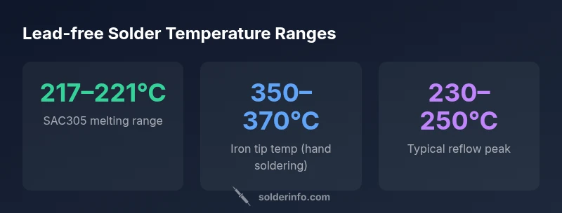 According to SolderInfo, mastering lead-free soldering temperatures starts with understanding alloy chemistry and heat transfer. In particular, the common SAC alloys (like SAC305) have a melting range around 217–221°C. This means your solder will begin to liquefy around this temperature, but the practical temperature you use in hand-soldering depends on the flux, pad geometry, component type, and your equipment. When you ask what temperature to solder lead free, you should think in terms of a process window rather than a single number: set your iron to an appropriate range, monitor the joint, and adjust quickly to avoid overheating. This baseline helps tailor process conditions to electronics, plumbing, or jewelry projects.