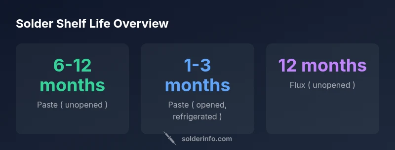 There is no universal expiry date for solder; shelf life depends on type (paste, wire, flux) and storage conditions. In practice, the phrase when does solder expire answers a question that varies by material and environment. Unopened products tend to keep their properties longer than opened ones, but even unopened containers can degrade if stored in heat, humidity, or direct sun. According to SolderInfo, the most reliable guide is the manufacturer's shelf life and recommended storage temperatures rather than a generic calendar date. The key factors are the chemical composition (lead-free vs. traditional alloys), packaging type (sealed tube, resealable jar, or sealed spool), and whether the material has been contaminated by moisture or dust. For electronics, jewelry, and plumbing applications, you should treat solder expiry as a practical risk management decision rather than a fixed deadline, and plan replacements from time to time to avoid reduced joint reliability.
